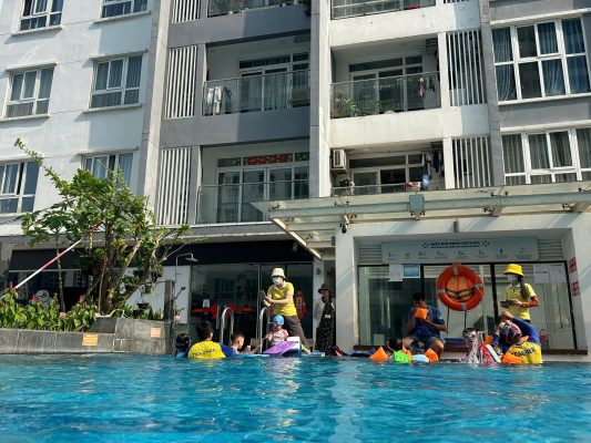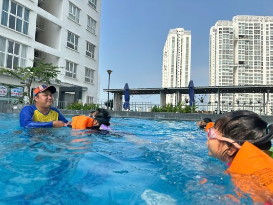 Thế nhưng, khóa học ngắn, học sinh có hôm học, hôm nghỉ. Có rất nhiều lý do để nghỉ học. Hôm sau, trở lại hồ lại ngại xuống nước hoặc theo không kịp bạn cũng nản. Và thật sự là việc học bơi vẫn mang tâm lý đối phó.